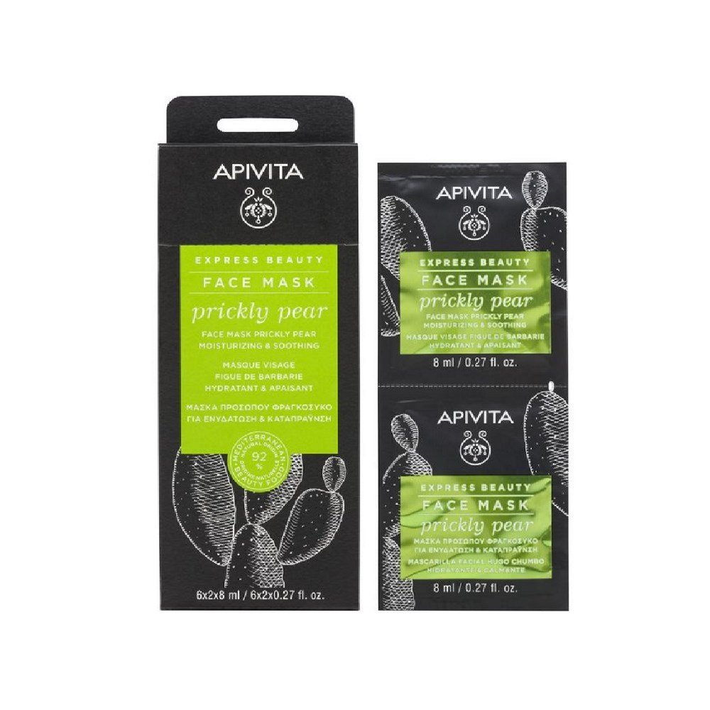 Η Apivita Express Beauty Face mask Prickly pear είναι μια μάσκα ενυδάτωσης και αναζωογόνησης με φραγκόσυκο, με κρεμώδη υφή κατάλληλη για όλους τους τύπους επιδερμίδας.