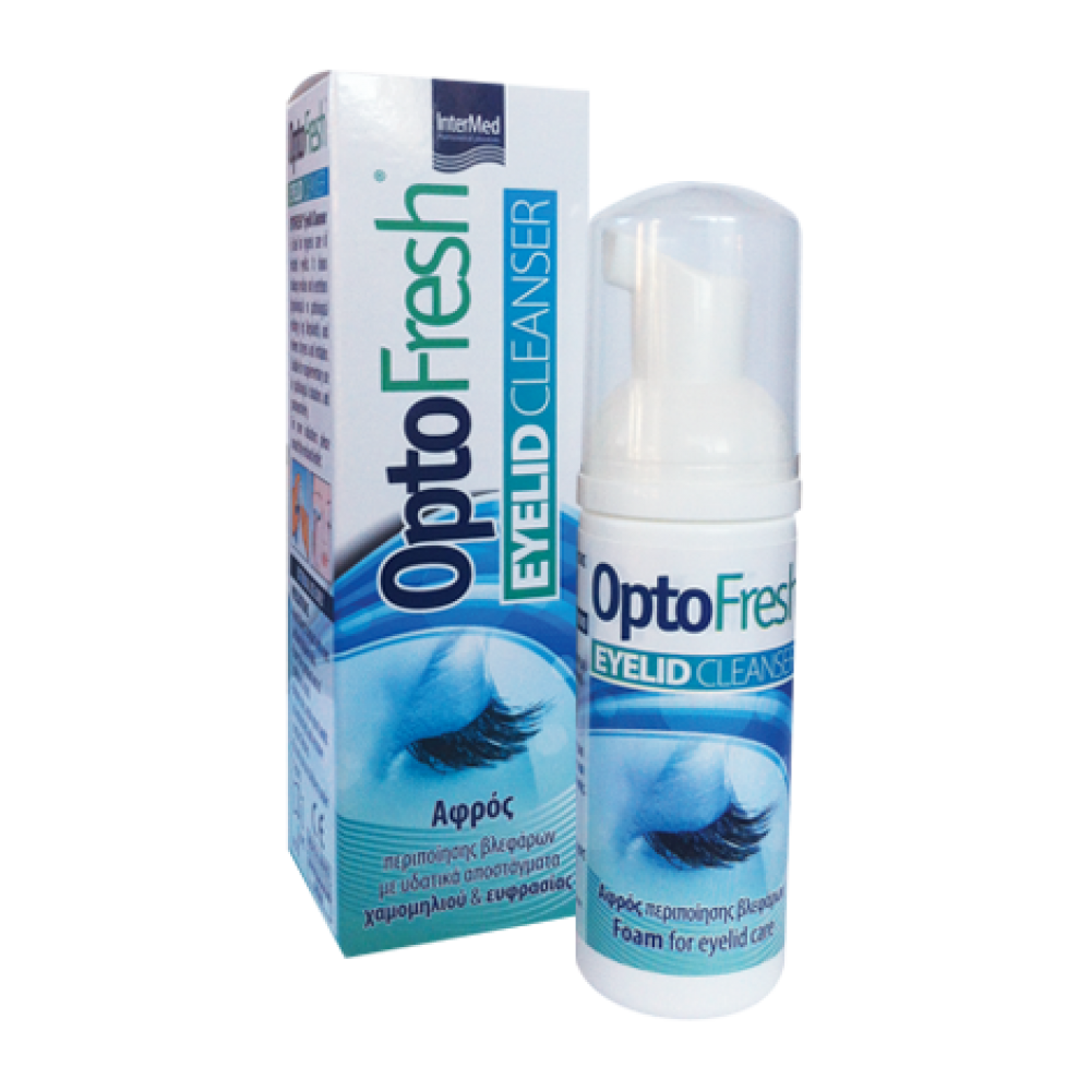 Το Intermed Optofresh Eyelid Cleanser, χάρη στα υδατικά αποστάγματα χαμομηλιού και ευφρασίας που περιέχει, είναι ο ιδανικός αφρός καθαρισμού και περιποίησης των ερεθισμένων βλεφάρων. Τα βλέφαρα, λόγω της πολύ λεπτής επιδερμίδας τους, είναι ευάλωτα σε πολλούς ερεθιστικούς παράγοντες, με αποτέλεσμα την εμφάνιση ξηρότητας και ερεθισμών. Τόσο οι εκκρίσεις των οφθαλμών –είτε φυσιολογικές, είτε παθολογικής αιτιολογίας – όσο και η έκθεση των βλεφάρων στην πληθώρα των εξωγενών, ερεθιστικών παραγόντων (σκόνη, καπνός, καυσαέρια, ξηρός αέρας, μακιγιάζ) ερεθίζουν τα βλέφαρα και τα καθιστούν επιρρεπή στην εμφάνιση βλεφαρίτιδας και άλλων δερματικών παθήσεων.