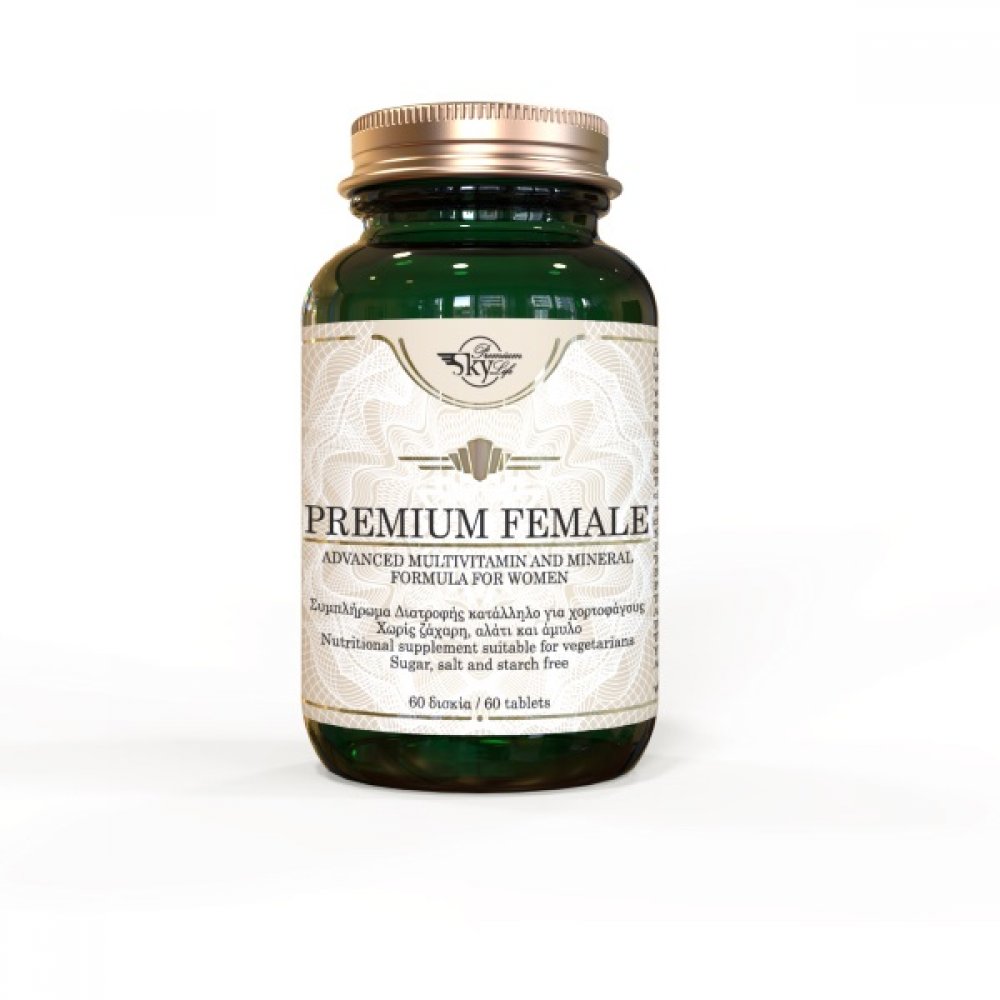 Στη σύνθεσή του, το Sky Premium Female περιέχει ένα μοναδικό συνδυασμό βιταμινών, μετάλλων και μικροστοιχείων. Μια καθημερινή εγγύηση που εξασφαλίζει ότι το σώμα σας παίρνει τις όλες τις βιταμίνες και τα μεταλλικά στοιχεία που χρειάζεται.
