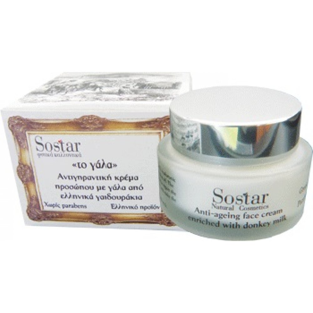 Κρέμα προσώπου – λαιμού εντατικής αντιγήρανσης, εμπλουτισμένη με γαϊδουρινό γάλα, υαλουρονικό οξύ, πανθενόλη, βιταμίνη Ε, έλαιο ηλίανθου, αλλαντοίνη και έλαιο ελιάς. Ο πανίσχυρος συνδυασμός των συστατικών της μειώνει ορατά τις ρυτίδες και τις λεπτές γραμμές έκφρασης ενώ παράλληλα θρέφει την επιδερμίδα και την βοηθάει να αποκτήσει ξανά την χαμένη ελαστικότητα και λάμψη της.