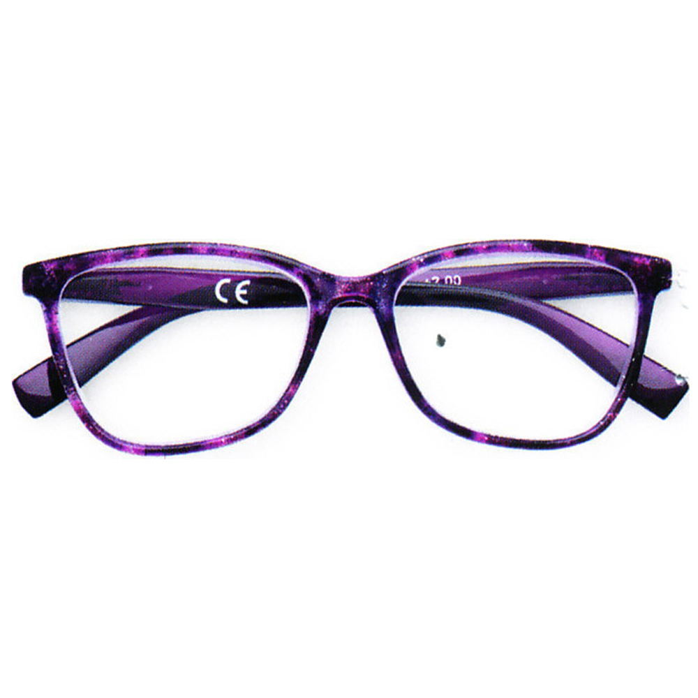 Γυναικεία γυαλιά ανάγνωσης της εταιρείας Zippo, κατασκευασμένα από κοκκάλινο μωβ σκελετό και +2.00 βαθμούς πρεσβυωπίας.
